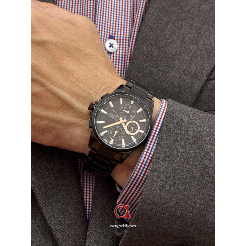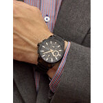 Корпус из прочного сплава и черный матовый finish создают впечатление строгости и солидности. Часы выполнены в круглом дизайне, который делает их универсальным аксессуаром для любого повода — будь то деловая встреча или вечерняя прогулка. Черный циферблат с выразительными отметками и дополнительными циферблатами для более удобного считывания времени подчеркнет ваш стиль и статус.