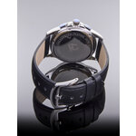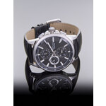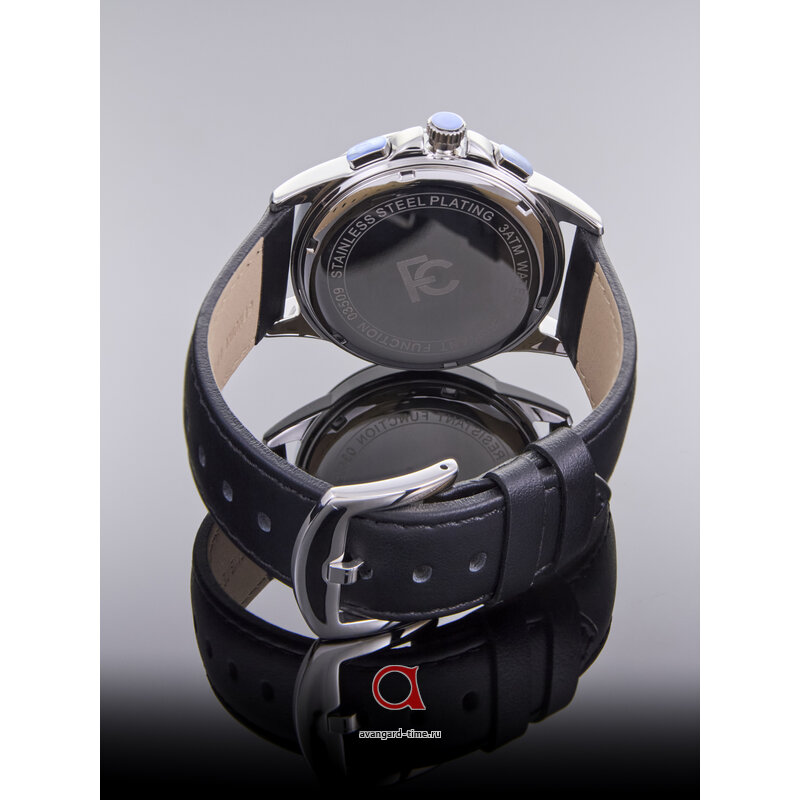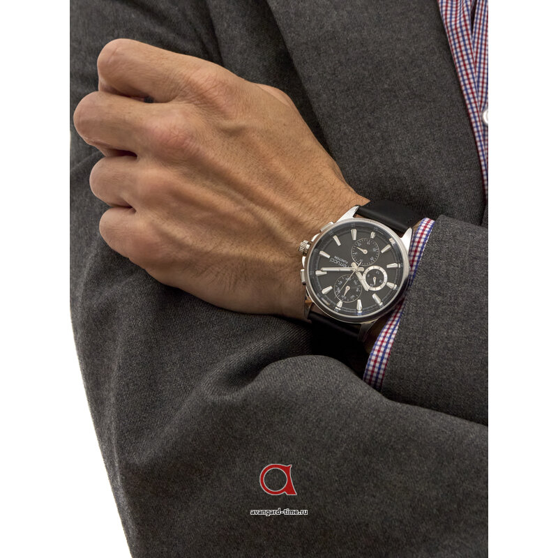 Часы имеют хромированный корпус из сплава, минеральное стекло, кожаный черный ремешок и календарь. Источником энергии служит батарейка, а класс водонепроницаемости - 3 Bar, что делает часы устойчивыми к влаге. Гарантия на часы - 1 год.