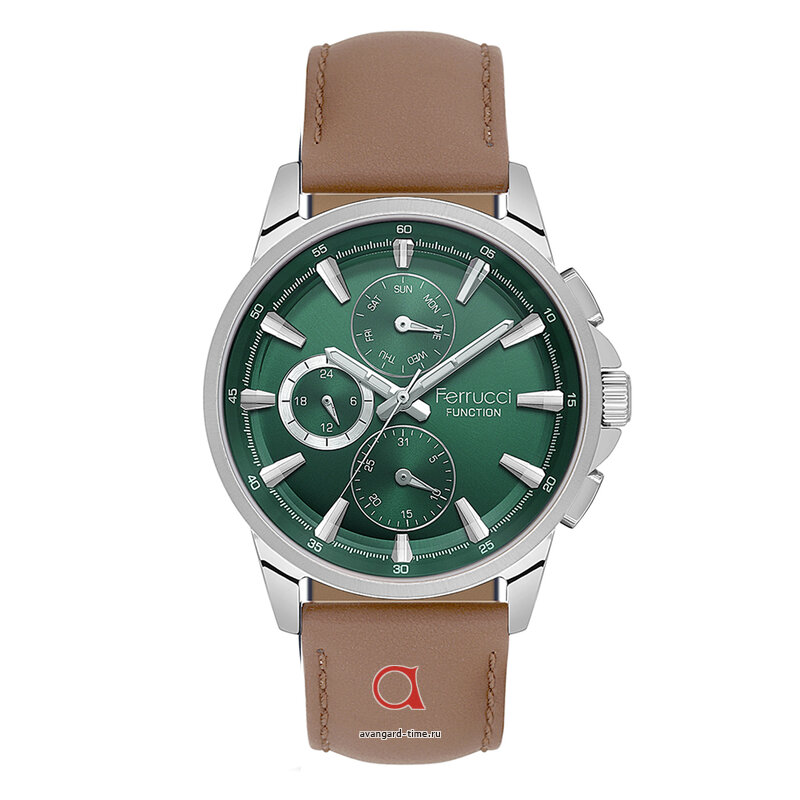 Шикарные часы FERRUCCI 03509-04 - отличный выбор для стильных мужчин! Эти классические наручные часы с аналоговым способом отображения времени и круглым циферблатом привлекут внимание своим элегантным дизайном. Встроенная подсветка обеспечивает удобство в использовании в любое время суток. Корпус из хромированной стали и бежевый кожаный ремешок создают эффектный контраст, а зеленый цвет циферблата придает часам уникальный шарм. Эти часы имеют дополнительные циферблаты для учета действующих источников энергии от батареек. С гарантией 1 год и водонепроницаемостью 3 Bar они станут надежным аксессуаром на каждый день. Календарь и отличные отметки делают их функциональными и удобными в использовании. Эти часы идеально подойдут для взрослой аудитории и станут отличным подарком. Бренд FERRUCCI гарантирует высокое качество и стильный дизайн. Тип часов - кварцевый, мужской пол. Материал корпуса - Alloy, стекло - минеральное. Произведены в Китае. Удивите себя и окружающих стильными часами FERRUCCI 03509-04!