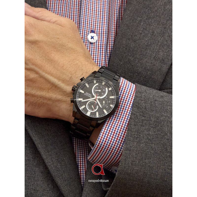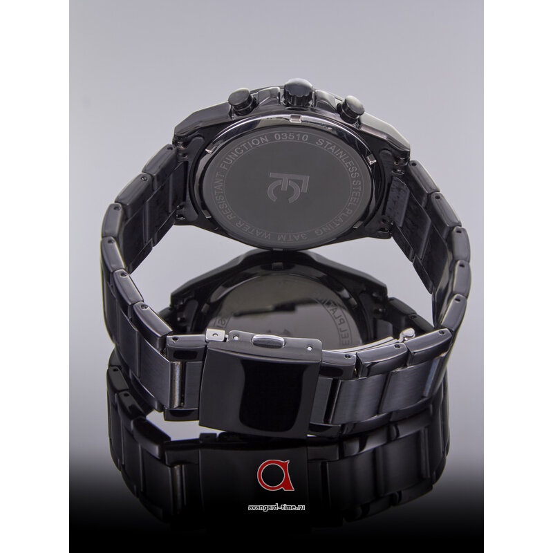 Циферблат, выполненный в темных тонах, с четкими отметками в качестве индикации, обеспечивает отличную читаемость времени в любых условиях. Дополнительные циферблаты помогут вам отслеживать нужные показатели, а наличие календаря станет приятным бонусом в повседневной жизни. Минеральное стекло защищает часы от царапин и повреждений, а класс водонепроницаемости 3 Bar позволит вам не беспокоиться о случайных брызгах воды.