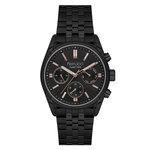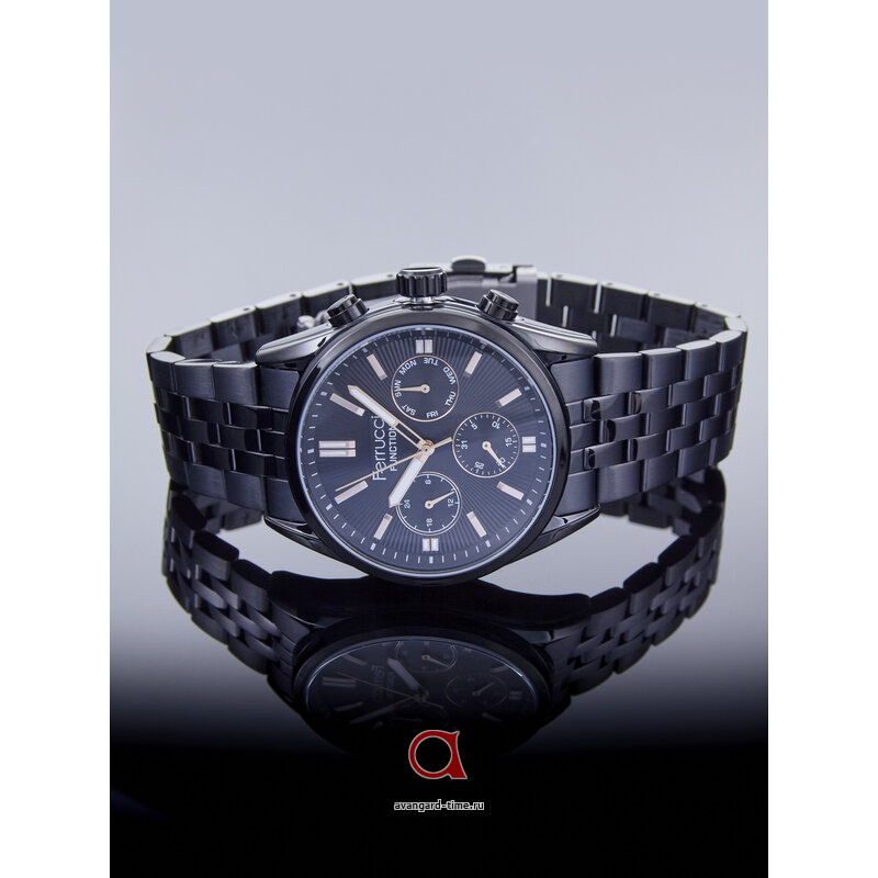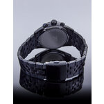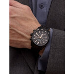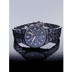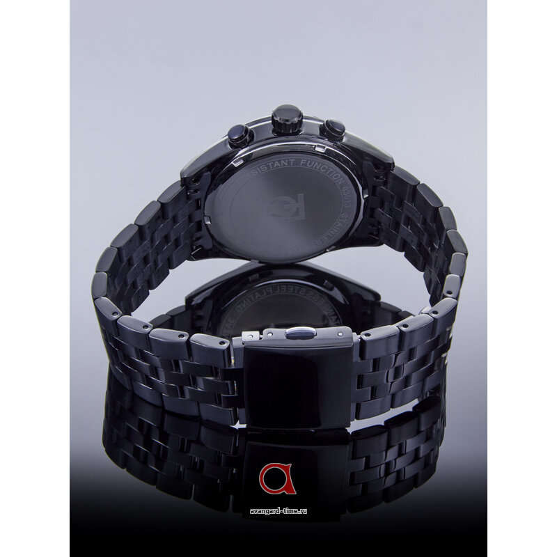 Циферблат также черного цвета, что подчеркивает его лаконичную и сдержанную эстетику. Часы оснащены дополнительными действующими циферблатами и отметками, что делает их использование удобным и практичным. Встроенный календарь добавляет функциональности, позволяя отслеживать важные даты и события.