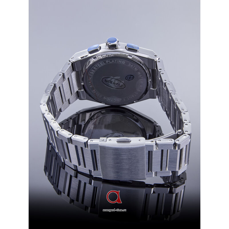 Корпус часов выполнен из прочного сплава (Alloy) с хромовым покрытием, придающим им роскошный вид, а серебристый браслет из нержавеющей стали обеспечивает надежность и долговечность. Длина ремешка составляет 180 мм, а ширина — 25 мм, что гарантирует идеальную посадку на запястье.