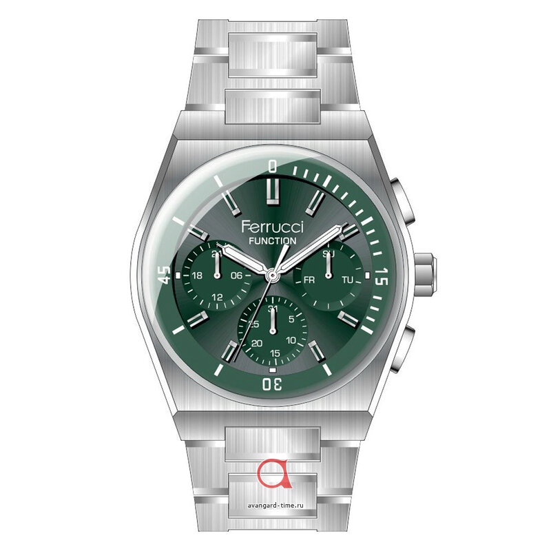 Шикарные наручные часы FERRUCCI 03514-02 - это идеальный выбор для ценителей классического стиля. Сочетание бочкообразного корпуса в хромовом цвете с серебристым браслетом из нержавеющей стали придает этим часам изысканный вид. Зеленый циферблат с действующими дополнительными циферблатами и комбинированным типом индикации делает их не только стильными, но и функциональными.