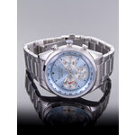 Часы выполнены в круглом корпусе цвета хром с минималистичным голубым циферблатом, на котором расположены комбинированные индикаторы времени. Дополнительные действующие циферблаты помогут вам быть организованным и всегда оставаться в курсе событий. Корпус изготовлен из прочного материала Alloy, что придаёт часам дополнительную надежность и долговечность.