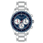 Корпус часов выполнен из прочного и стильного хромированного сплава (Alloy), что придает им изысканный вид и надежность. Серебристый металлический браслет из нержавеющей стали идеально сочетается с круглыми формами корпуса и контрастным синим циферблатом, демонстрируя приверженность к классическому стилю и вниманию к деталям.