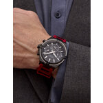 Корпус часов выполнен из надежного alloy-материала черного цвета, который подчеркивает строгость и элегантность. В сочетании с ярким красным силиконовым ремешком, длина которого составляет 200 мм, и шириной 22 мм, эти часы гарантируют комфортную посадку на запястье, а также эффектный визуальный контраст для создания уникального стиля.