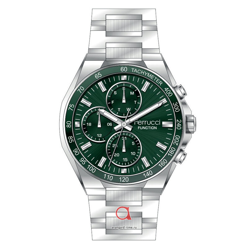 Эти часы надежно защищены от нежелательной влаги и пыли (класс водонепроницаемости 3 Bar) и работают от батарейки, что обеспечивает долгий срок службы. С дополнительными циферблатами, календарем и типом индикации отметка часов FERRUCCI 03522-02 удовлетворят все ваши потребности.