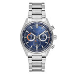 Эти классические аналоговые часы с круглым корпусом из хрома и серебристым браслетом из нержавеющей стали отлично подойдут для взрослой аудитории. Яркий синий циферблат с отметками времени и действующими дополнительными циферблатами делает часы еще более привлекательными.