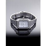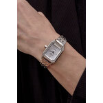 Часы выполнены в модном прямоугольном формате с хромированным корпусом, который добавляет нотку современности и роскоши. Браслет из нержавеющей стали в гармоничном цвете хрома не только прочен, но и легко комбинируется с любым стилем одежды, от повседневных нарядов до вечерних туалетов. Перламутровый циферблат с отметками и изящными стразами привлекает внимание и гарантирует, что время всегда будет обращать на себя взгляды.