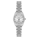 Часы имеют аналоговый способ отображения времени, что придает им классический и неподвластный времени вид. Круглая форма корпуса из хромированного металла гармонично сочетается с серебристым браслетом, создавая изысканный образ, который идеально вписывается в любой модный наряд. Серебристый циферблат, украшенный стразами, добавляет нотку шика и изящества, делая эти часы настоящим украшением вашего запястья.