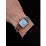 Корпус выполнен из прочного легкого сплава хромового цвета, а натуральный стальной браслет, также с хромовой отделкой, гарантирует долговечность и износостойкость. Часто именно детали диктуют стиль, и голубой циферблат с аккуратными отметками часов добавляет свежести и оригинальности. Длина ремешка составляет 190 мм, а его ширина — 14 мм, что делает эти часы идеальными для большинства женских запястий.