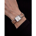 Часы имеют аналоговый способ отображения времени и выполнены в модном восьмиугольном корпусе, что делает их уникальными и запоминающимися. Хромированный корпус и браслет из нержавеющей стали подчеркивают изысканность и защиту от повреждений, обеспечивая долговечность использования. Серебристый циферблат с аккуратными отметками гармонично смотрится на запястье и легко читается даже при слабом освещении.