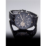 С их восьмиугольной формой корпус из черного сплава придает уникальный стиль, а хромированный ремешок из нержавеющей стали гарантирует долговечность и комфорт в носке. Черный циферблат с отметками и дополнительными действующими циферблатами, подчеркивает элегантность и серьезность этих часов, а встроенная подсветка позволяет легко считывать время даже в темноте.