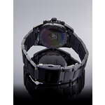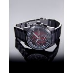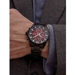 Корпус черного цвета выполнен из прочного сплава, что обеспечивает долговечность и надежность. А стильный черный браслет из нержавеющей стали с шириной 22 мм гарантирует комфорт и идеальную посадку на запястье. Бордовый циферблат с отметками создает контраст, делая время на часах легко читаемым.