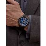 Корпус в черном цвете выполнен из прочного материала Alloy, что делает его не только стильным, но и надежным. Синий циферблат с отметками и дополнительными циферблатами выглядит впечатляюще и позволяет легко считывать время. Благодаря минеральному стеклу, вы можете быть уверены в его долговечности, а класс водонепроницаемости 3 Bar защитит часы от небольших брызг и дождя.