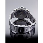 Часы имеют кругную форму корпуса, выполненного из прочного сплава и стильного хромированного цвета. Серебристый браслет из нержавеющей стали идеально сочетается с черным циферблатом, создавая элегантное контрастное сочетание. Дополнительные действующие циферблаты и отметки на циферблате обеспечивают легкость считывания времени, а наличие подсветки позволит вам быть уверенным в точности даже в условиях слабого освещения.