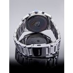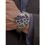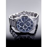Классический круглый циферблат с элегантным синим фоном и четкими отметками обеспечивает отличную читаемость времени, а дополнительные циферблаты, включая календарь и второй часовой пояс, делают эту модель универсальной для повседневного использования и путешествий. Изготовленные из высококачественных материалов, они оснащены прочным хромированным корпусом и стильным серебристым браслетом из нержавеющей стали, который не только выглядит гармонично, но и обеспечивает долговечность.