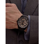 Корпус из прочного сплава, а ремешок из нержавеющей стали в черном цвете обеспечивают не только стильный внешний вид, но и долговечность изделия. Минеральное стекло защищает циферблат от царапин и повреждений, а стильные отметки на черном циферблате гарантируют лёгкость восприятия времени. Дополнительные действующие циферблаты добавляют функциональности, а календарь и второй часовой пояс делают часы максимально удобными для повседневного использования.
