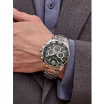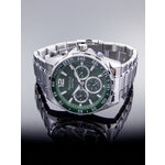 Циферблат в насыщенном зеленом цвете привлекает внимание и становится ярким акцентом в вашем наряде. Комбинированная индикация времени и действующие дополнительные циферблаты гарантируют легкость считывания информации, а наличие календаря добавляет практичности в повседневное использование.