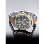 Корпус в хромированном цвете и красивый золотистый ремешок из нержавеющей стали создают эффектный контраст с зеленым циферблатом, привлекая взгляды и подчеркивая вашу статусность. На циферблате расположены стильные отметки и изысканные стразы, которые добавляют блеска и стиля, а функция подсветки позволит вам легко ориентироваться во времени даже в условиях низкой освещенности.