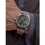 Хромированный корпус и браслет из нержавеющей стали придают часам прочность и долговечность, а зеленый циферблат с отметками легко читается и выделяется на фоне неброского дизайна. Дополнительные действующие циферблаты не только дополняют общий вид часов, но и дарят вам возможность отслеживать важные события с легкостью.