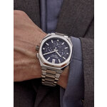 Синий циферблат и хромированный браслет из нержавеющей стали создают эффектный контраст, придавая часам элегантный вид. Длина ремешка составляет 185 мм, а ширина 24 мм, что обеспечивает удобство и комфорт при ношении. Кроме того, часы оснащены функцией подсветки, что позволяет удобно считывать время даже в темноте.