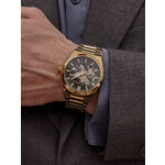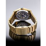 Корпус часов выполнен из легкого и прочного сплава, а его золотистый цвет добавляет изысканности. Нержавеющая сталь браслета/ремешка обеспечивает долговечность и комфорт при ношении. Ширина 25 мм и длина 175 мм делают эту модель идеальной для большинства запястьев.