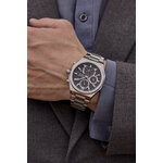 Изготовленные из нержавеющей стали, браслет и корпус обеспечивают долговечность и надежность, а хромированный цвет придает им современный и стильный вид. Длина ремешка составляет 180 мм, ширина – 23 мм, что способствует комфортной носке для взрослой мужской аудитории. К тому же, у вас есть возможность отслеживать дату благодаря встроенному календарю, что делает эти часы не только стильным, но и практичным аксессуаром.