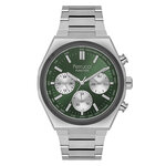 Часы имеют округлую форму и изящный хромированный корпус, который делает их идеальным аксессуаром как для повседневной носки, так и для особых случаев. Зеленый циферблат с серебристыми отметками добавляет оригинальности в классический стиль, а действующие дополнительные циферблаты позволят вам следить за временем с предельной точностью.