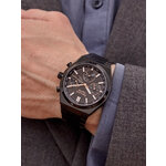 Циферблат также выполнен в черных тонах с лаконичными отметками, что добавляет элегантности и минимализма. Функция подсветки обеспечит комфортное чтение времени даже в темных условиях. Кроме того, часы оснащены дополнительными циферблатами и календарем, что делает их еще более функциональными.