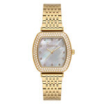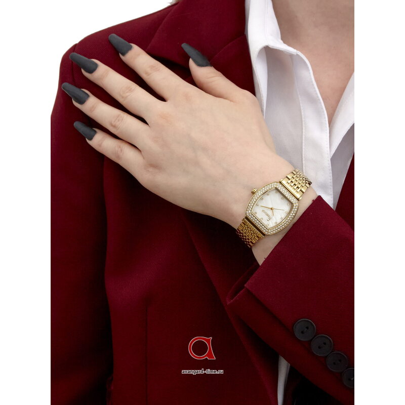 Сочетание бочкообразной формы и золотистого цвета корпуса из нержавеющей стали делает модель поистине роскошной. Перламутровый циферблат с выразительными отметками и сверкающими стразами придаёт часам необыкновенный шарм, перекликаясь с модными тенденциями Fashion. Кварцевый механизм SEIKO (модель VJ21C1) гарантирует точность хода, а источник энергии на батарейках обеспечивает надежную работу.