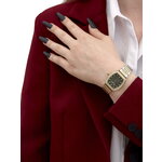 Золотистый корпус из нержавеющей стали и хромированный ремешок обеспечивают надежность и долговечность этой модели, не уступая при этом по стилю. Яркий зеленый циферблат привлекает внимание и добавляет нотку свежести в ваш наряд, а наличие стразов делает эти часы поистине уникальными и эффектными.
