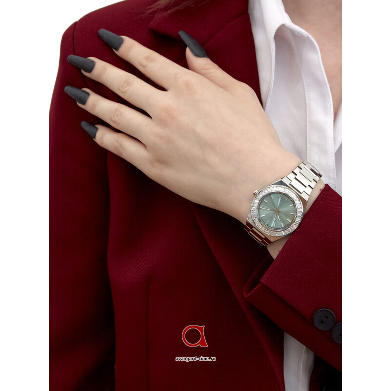 Часы имеют круглый корпус из нержавеющей стали с элегантной хромированной отделкой, что придаёт им особый шик. Бирюзовый циферблат украшен стильными стразы, которые не только подчеркивают их уникальность, но и добавляют блеска вашему запястью. Время отображается с помощью классических отметок, а подсветка позволяет легко читать время даже в темноте.