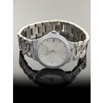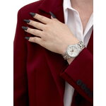 Корпус часиков выполнен из нержавеющей стали, что обеспечивает долговечность и прочность. Хромированный цвет корпуса в сочетании с серебристым браслетом из нержавеющей стали создает великолепный визуальный эффект, подчеркивающий ваш стиль и индивидуальность. Циферблат также выполнен в серебристом оттенке и украшен стильными отметками и изящными стразами, которые добавляют утончённости и блеска.