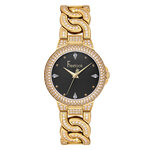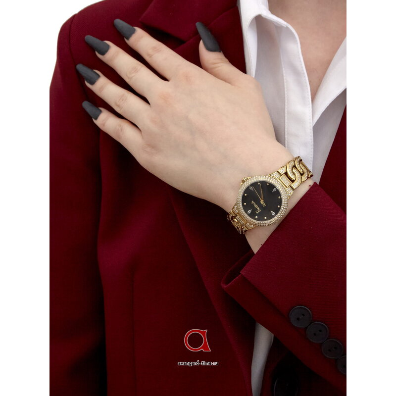Часы имеют круглый корпус, выполненный из высококачественной нержавеющей стали с роскошным золотистым покрытием, которое придаёт им утончённый вид. Черный циферблат с яркими стразы — идеальное сочетание, которое подчеркнёт ваш индивидуальный стиль и выделит вас из толпы. Аналогальное отображение времени с отметками делает эти часы не только стильными, но и функциональными.
