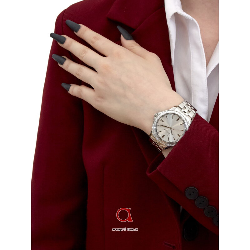 Серебристый циферблат с изящными отметками и добавлением сверкающих стразов привлекает внимание и делает каждую minute значимой. Часы оснащены надежным кварцевым механизмом MIYOTA 2035, который гарантирует точность и долговечность. Благодаря качественному минеральному стеклу и классу водонепроницаемости 5 Bar, вы можете не бояться носить их в повседневной жизни и даже в дождливую погоду.