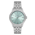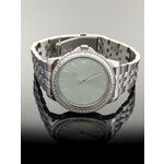 Корпус часов из высококачественной нержавеющей стали в стильном хромовом цвете подчеркивает их изысканный дизайн, а зеленый циферблат с яркими отметками обеспечивает легкость в восприятии времени. Изящные стразы, расположенные на циферблате, добавляют нотку роскоши и делают эти часы настоящим украшением запястья.