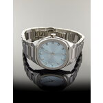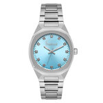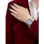 Часы имеют круглый хромированный корпус, выполненный из прочной нержавеющей стали, что гарантирует долговечность и устойчивость к внешним воздействиям. Уникальный голубой циферблат, украшенный изящными стразами, не только привлекает внимание, но и подчеркивает ваш индивидуальный стиль. Аналоговый способ отображения времени и наличие подсветки значительно облегчают чтение информации в любых условиях освещения.