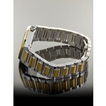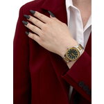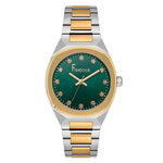 Дизайн часов впечатляет своим изысканным сочетанием: круглый корпус из нержавеющей стали в хромированном цвете прекрасно контрастирует с золотистым браслетом, что делает аксессуар поистине уникальным. Зеленый циферблат украшен изящными стразы, добавляя нотки роскоши и сияния. За точность отвечает кварцевый механизм MIYOTA 2035, который обеспечивает надежность и долговечность.