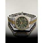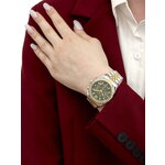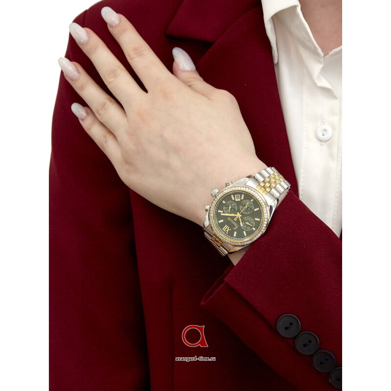 Стиль Fashion, в котором выполнены часы, легко впишется в любой образ, от повседневного до вечернего. Хромированный корпус и браслет из нержавеющей стали не только подчеркивают высший класс изделия, но и обеспечивают прочность и долговечность. Зелёный циферблат с комбинированной индикой делает время легко читаемым, а изящные стразы добавляют яркости и очарования.