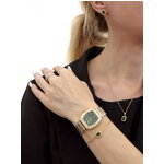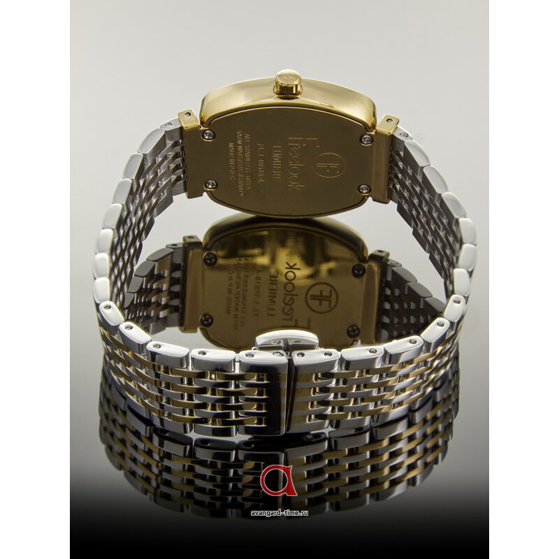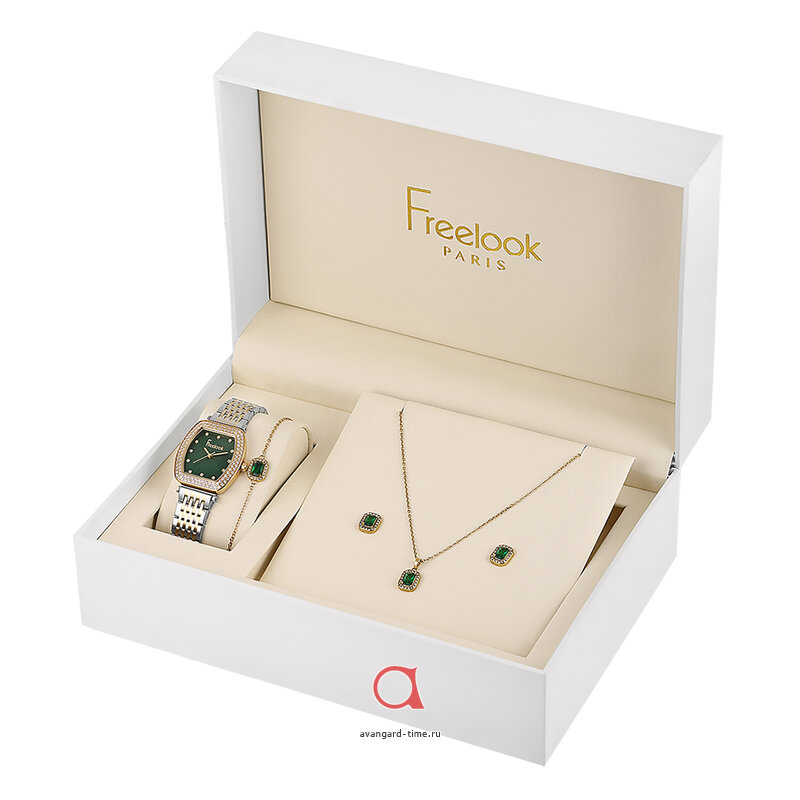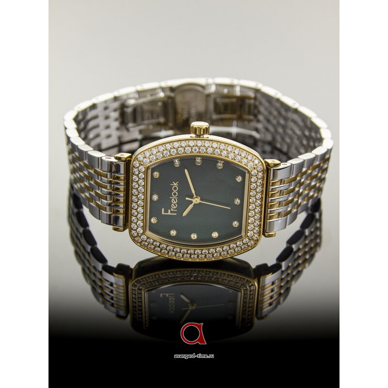 Часы Freelook имеют уникальную бочкообразную форму и стильный хромированный корпус, который подчеркивает их изысканный вид. Зеленый циферблат щедро украшен стразами, что придаёт часам немного яркости и игривости. Аналоговое отображение времени и чёткие отметки позволяют мгновенно считывать время, что делает часы не только красивыми, но и практичными.