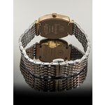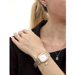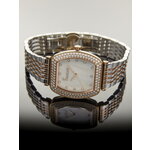 Аналоговый способ отображения времени в сочетании с бочкообразной формой корпуса подчеркивает женственность и изящество дизайна. Хромированный корпус и браслет из нержавеющей стали добавляют нотку современности, а перламутровый циферблат с индикацией в виде точечных отметок и небольшими стразами придают часам особую привлекательность и блеск.
