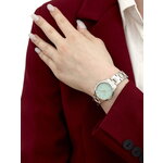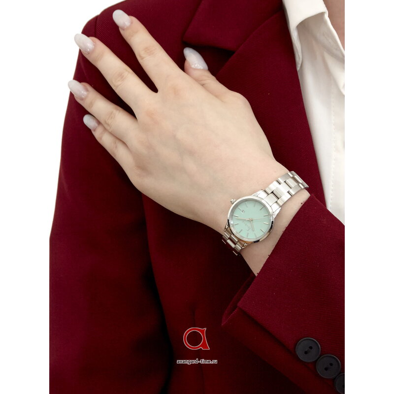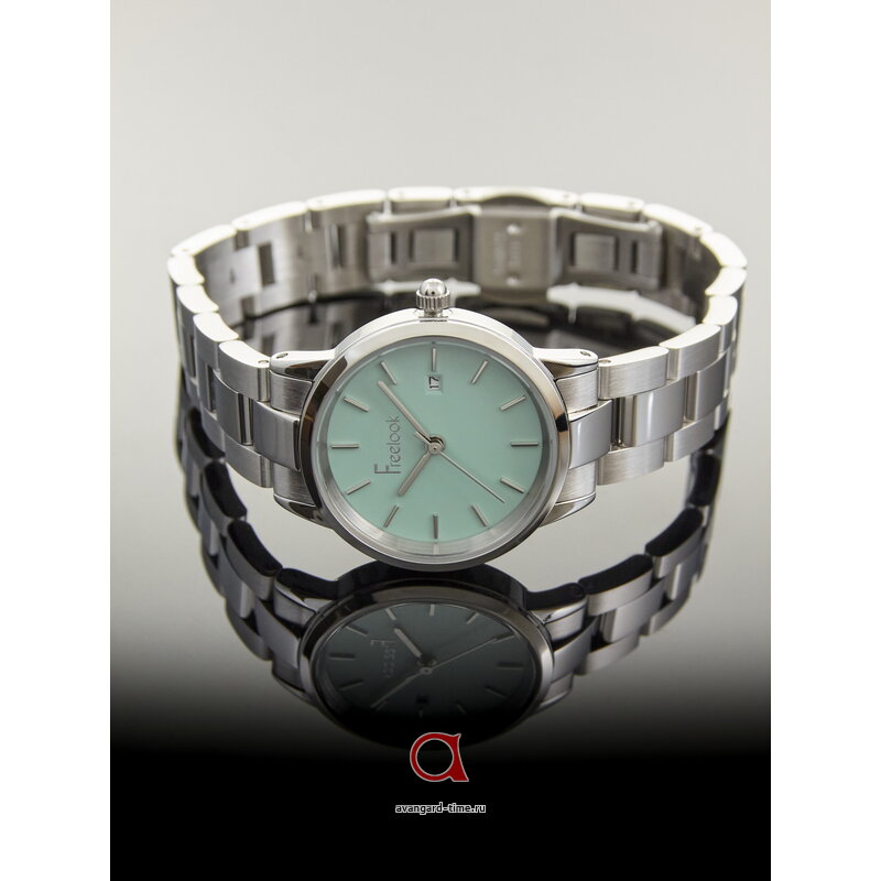 Корпус выполнен из нержавеющей стали с элегантным хромовым покрытием, что гарантирует долговечность и износостойкость. Круглая форма и изящный бирюзовый циферблат делают этот аксессуар не только практичным, но и стильным акцентом, который привлечёт к вам внимание. Нержавеющий стальной браслет в том же гармоничном хромовом цвете идеально сочетается с корпусом и обеспечивает комфорт при носке.
