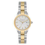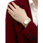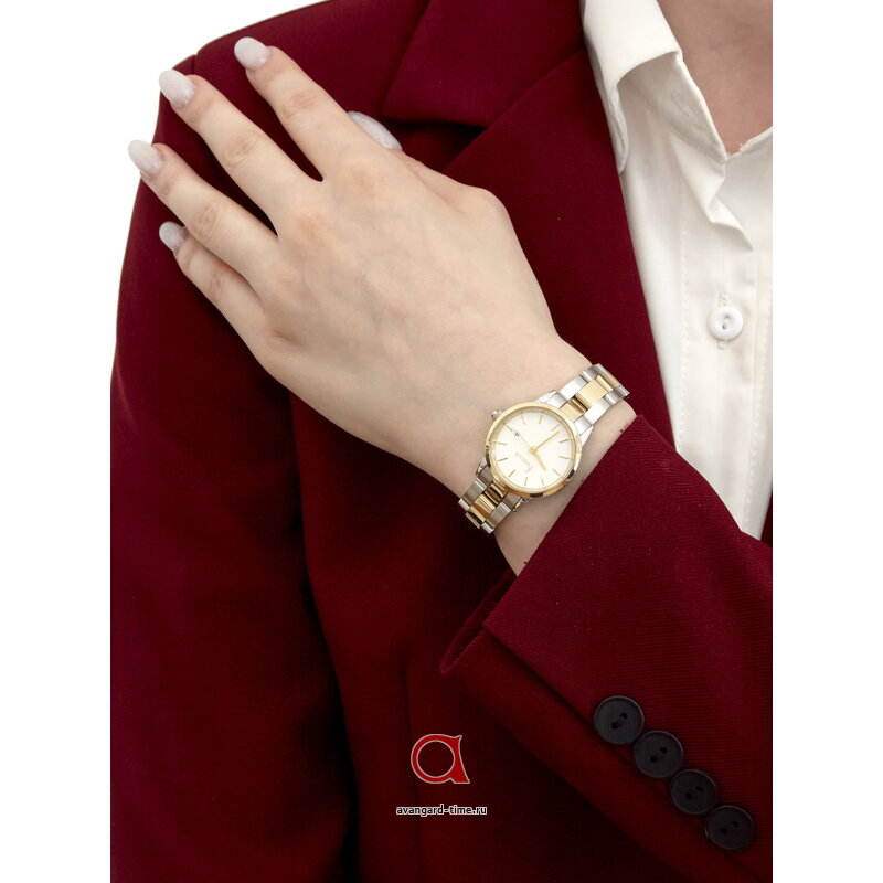 Часы обладают круглой формой и выполнены в элегантном хромированном корпусе, который гармонично сочетается с нержавеющей сталью браслета. Белый циферблат с отчетливыми отметками обеспечивает легкость восприятия времени, а стильный и строгий дизайн идеально подходит для женщин, стремящихся к классике в своем образе.