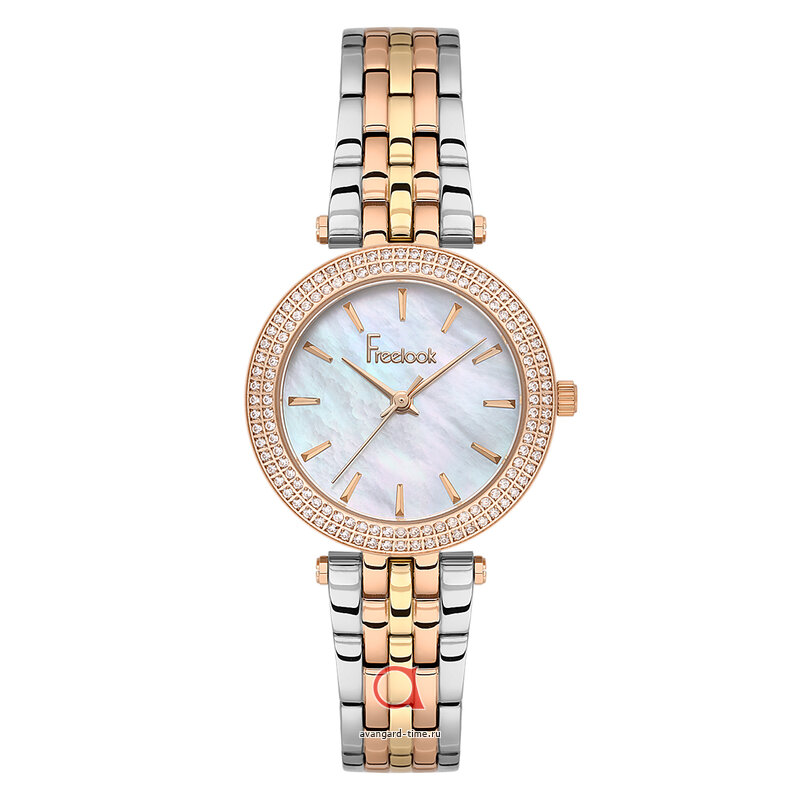Представляем вам часы Freelook 4.10016-6 — стильный аксессуар для женщин, который станет идеальным завершением любого образа. Эти наручные часы обладают круглыми формами и изысканным золотистым корпусом из нержавеющей стали, что не только подчеркивает их элегантность, но и обеспечивает долговечность. Перламутровый циферблат с яркими стразы, выделяющими индикаторы времени, придает часам особый шарм и оригинальность.