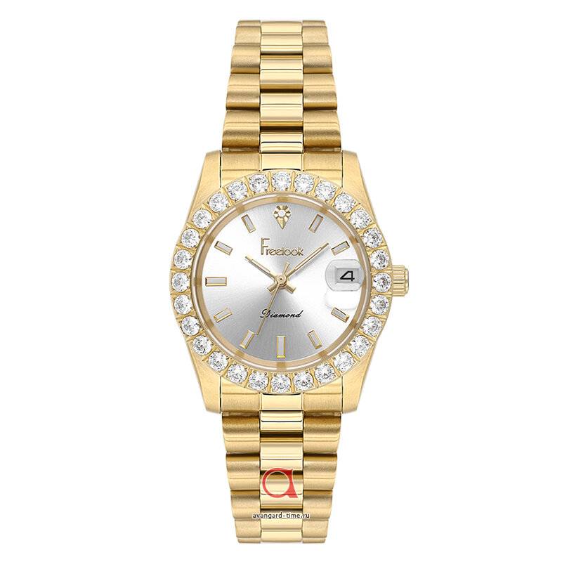 Корпус часов выполнен из нержавеющей стали и представлен в привлекательном золотистом цвете, что придает изделию нотки роскоши. Серебристый циферблат с яркими стразы создает впечатление утонченности и шарма, идеально подчеркивая ваш индивидуальный стиль. Ширина ремешка в 17 мм и длина 170 мм обеспечивают комфортную посадку на запястье, а также добавляют дополнительную изящность вашему образу.