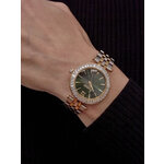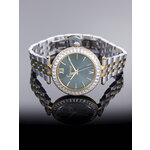 Циферблат в изысканном зеленом цвете привлекает внимание и создает эффектный контраст с корпусом и ремешком. Комбинированная индикация времени с добавлением Swarovski-стразы придает часам нотку блеска и элегантности, делая их не только функциональным, но и модным аксессуаром. Эти часы работают от надежного кварцевого механизма SEIKO VJ21C1, что обеспечивает точность и долговечность.