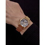Корпус из нержавеющей стали золотистого цвета придаёт часам роскошный вид, гармонично сочетающийся с серебристым циферблатом, на котором отсутствуют отметки, создавая минималистичный и стильный образ. Благодаря классическому круглому дизайну и длинному ремешку (170 мм) шириной 16 мм, эти часы отлично подойдут для женской аудитории, подчеркивая изящество запястья.