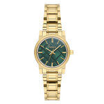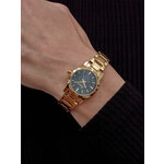 Главная фишка этих часов — их уникальный зеленый циферблат, который привлекает внимание и создает стильный контраст с золотистыми элементами. Аналоговый способ отображения времени с четкими отметками обеспечивает легко читаемое время, что делает их не только стильными, но и практичными.