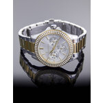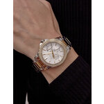 Циферблат с серебристым оттенком прекрасно сочетается с индикацией отметками и яркими стразы, которые делают часы по-настоящему уникальными и притягательными. Дополнительные действующие циферблаты добавляют функциональности и удобства в использовании. Кроме того, в этих часах предусмотрен календарь, что сделает вашу повседневную жизнь еще комфортнее.